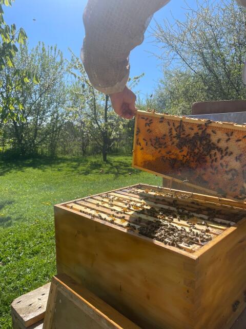 US Dadant Wirtschaftsvölker mit F1 Standbegatteter Carnica Königin aus dem Jahr 2025 Blau gekennzeichnet. Ab mitte/ende April abzugeben.