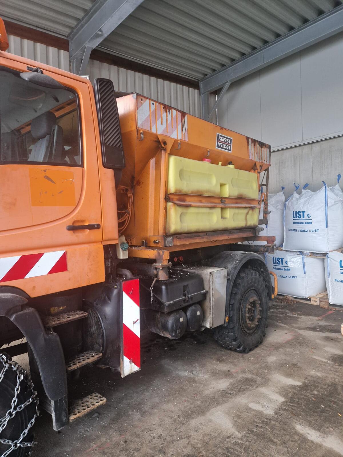 Verkauf U500, Unimog U500, 280 PS, OM906, Zugmaschine, Bj. 2006, 16.730 h, Kommunalhydraulik dw vo/hi, Frontzapfwelle, Anbauplatte Kat.3, Komfortsitz, Druckluftbremse, Arbeits- und Kriechganggruppe, N05 Motornebenantrieb schaltbar (i = 0,89), Auspuffrohr nach oben, Reifen MPT 365/80R20, guter Zustand, kein Rost, technisch sofort einsatzbereiten Zustand, Netto VHB € 29.500,-, Optional: Hydrostat € 5.000,-, Zusätzlich: Küpper Weisser Zweikammer Salz-Splitstreuer IMS80, Schneepflug Schmidt Tarron MS 40.1 Bj. 2004, Komplett: € 4.000,-.