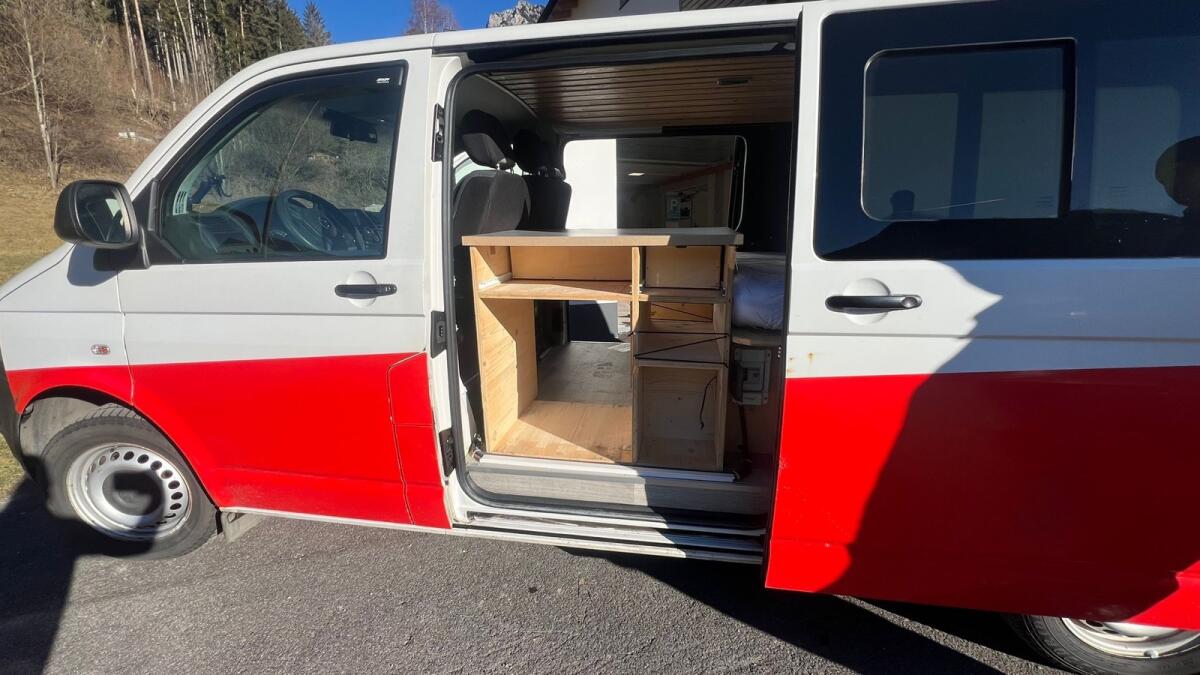 Schweren Herzens verkaufen wir, aufgrund von Familienzuwachs, unseren treuen Begleiter. VW T5 mit langem Radstand, komplett ausgebaut für das Campen. Pickerl wurde vor Kurzem neu gemacht und ist bis März 2027 (kein Überzug) gültig! Details: PS 115, aktueller km-Stand 250.000 (wird noch gefahren), Abgasklasse Euro 5, 2 Schiebetüren (li. und re.) und Hecktür (KEINE Heckklappe), 3-Sitzer mit Drehsitzkonsole auf der Beifahrerseite, Standheizung, Anhängerkupplung, eingebaute Versorgerbatterie (wird geladen während dem Fahren), Wechselstromrichter, Batteriewächter, Landstromsteckdose - schallgedämmt und wärmeisoliert, inkl. Matratze, 2 Schwerlastladen zum Ausziehen nach Hinten.