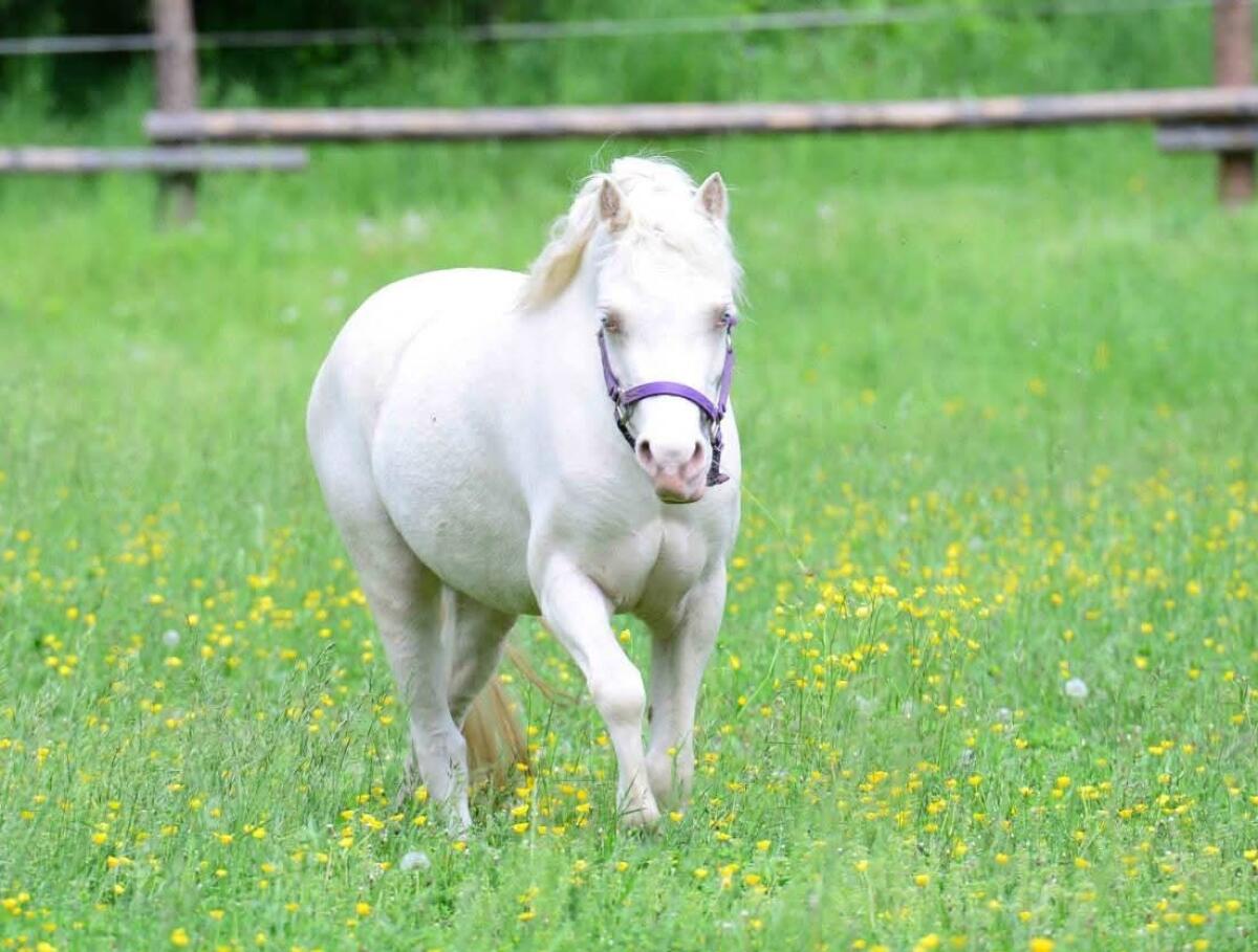 Verkaufe Welsh-A Stute, geb. 2010, Cremello, mit einem Stockmaß von 120 cm. Sie ist eingetragene Zuchtstute, hat volle Papiere und hatte bisher ein paar Fohlen bei uns, sie ist nicht geritten oder gefahren. Leider hat sie auch ein Handicap (beginnendes Asthma, chronischer Husten), weshalb sie weit unter Wert an einen guten Platz soll. Sie ist eher vorsichtig dem Menschen gegenüber, bis sie ihre Bezugsperson hat, kann vom Boden auch von Kindern gehandelt werden. Bei uns in der Herde ist sie bislang ranghoch. Kennt Box und Offenstall.
