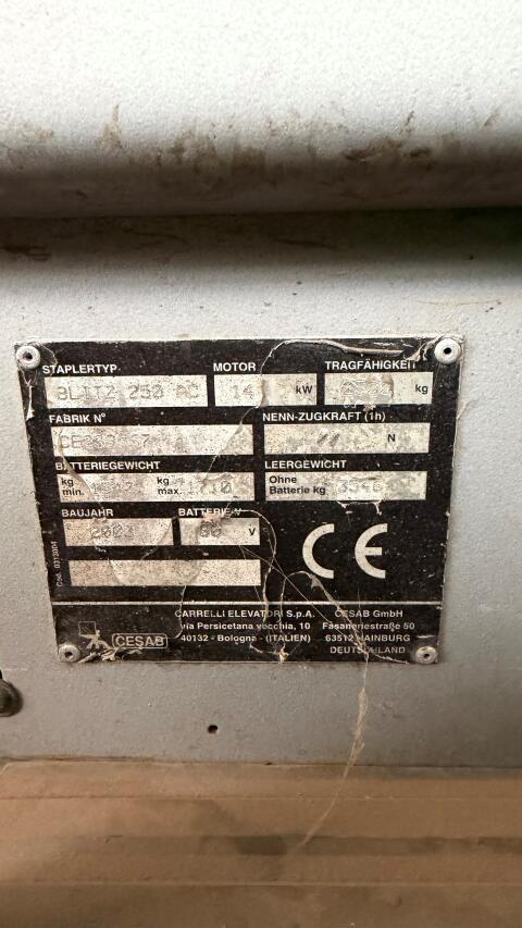 El. Stapler Cesab Blitz 250 AC im guten Zustand. Vor gut 1 Jahr wurden schlechte Batteriezellen getauscht und alle Platinen erneuert. Hubhöhe 5 m, Zinkenlänge 1, 4 m.