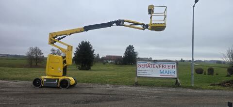 Vermietung eines Manitou 160 ATJ, mit 16, 5 m Höhe oder eines 180 ATJ mit 18, 5 m Höhe. Allrad mit verschiedenen Lenkarten (4-Rad-Lenkung, Hundegang). Zustellung, Selb