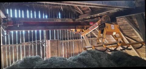 Verkaufe Heukran Marke 'Haberl', Ausführung als Hänge-Brückenkran mit Doppelkettenhubwerk (Hubgeschwindigkeit bis zu 35 m/min), hydr. Schoppeinrichtung, Kreuzhebel-F