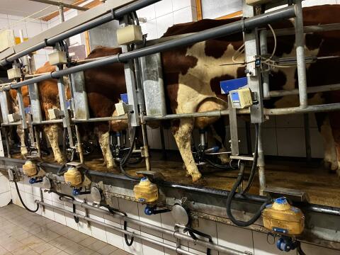 Zum Verkauf steht ein Delaval Doppel 5er Fischgrätenmelkstand 30 Grad. Mit MP400 Harmony Melkzeug, FI5 Milchmengenmessung, Waschautomat, Vakuumpumpe und ca. 25 m Mil