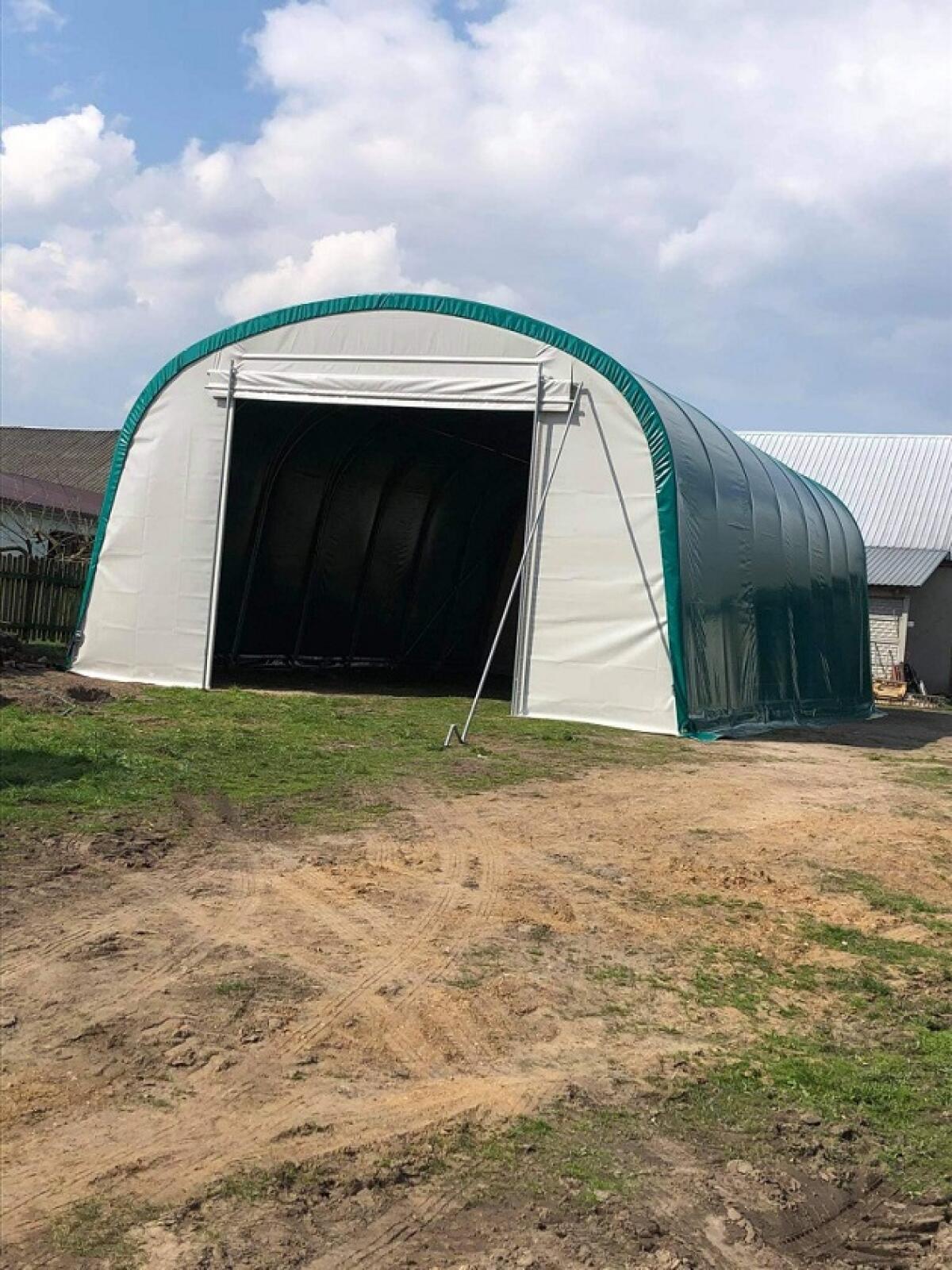 Wir bieten ein hochwertiges Bogenzelt mit den Maßen 12 m x 8 m x 4, 50 m (L x B x H), ideal für die Lagerung von Stroh, landwirtschaftlichen Maschinen oder anderen Gü