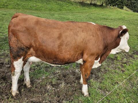 Verkaufe brave 3, 5-jährige Mutterkuh mit 4 Monate altem Kuhkalb. Vater davon war ein Angusstier. Kuh ist wieder trächtig. Beide sind Weide- und Almgwöhnt. Nur an gut