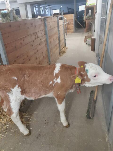 Verkaufe bio Fleckvieh Kuhkalb mit Abstammungsnachweis, geb. 18.10.2025. Preis auf Anfrage. Mercato bovino Vitelli Pezzata