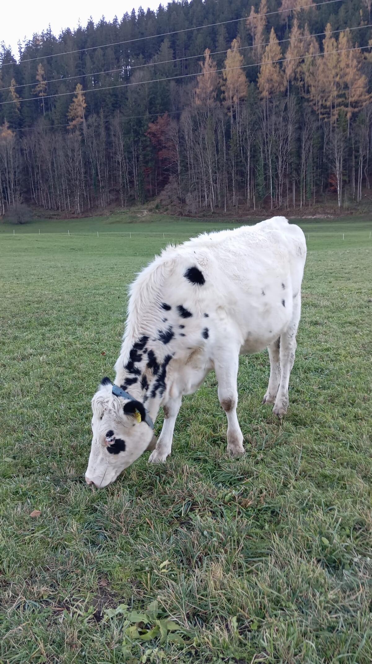 Verkaufe HF Jungkuh, ca. 24 kg Milch, wenig Kraftfuttereinsatz, silofrei, geweidet und gealpt. Sehr brav und ruhig, leider hinten links weniger Milch, Zellzahl in Or