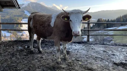 Verkaufe schöne Fleckviehkuh BIO, sehr gutmütig und führig. Geboren 01.01.2018, belegt mit GS Maxxis, soll kalben am 5.10.2026. Aktuell 25 kg Milch und 4, 2 % Fett, 3