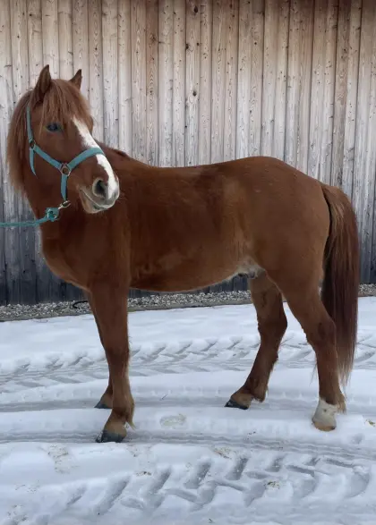 Da ich leider nicht alles behalten kann, gebe ich schweren Herzens meine selbst gezogene 2-jährige Ponystute mit schöner Blesse in förderbare Hände ab. Sie ist gesun