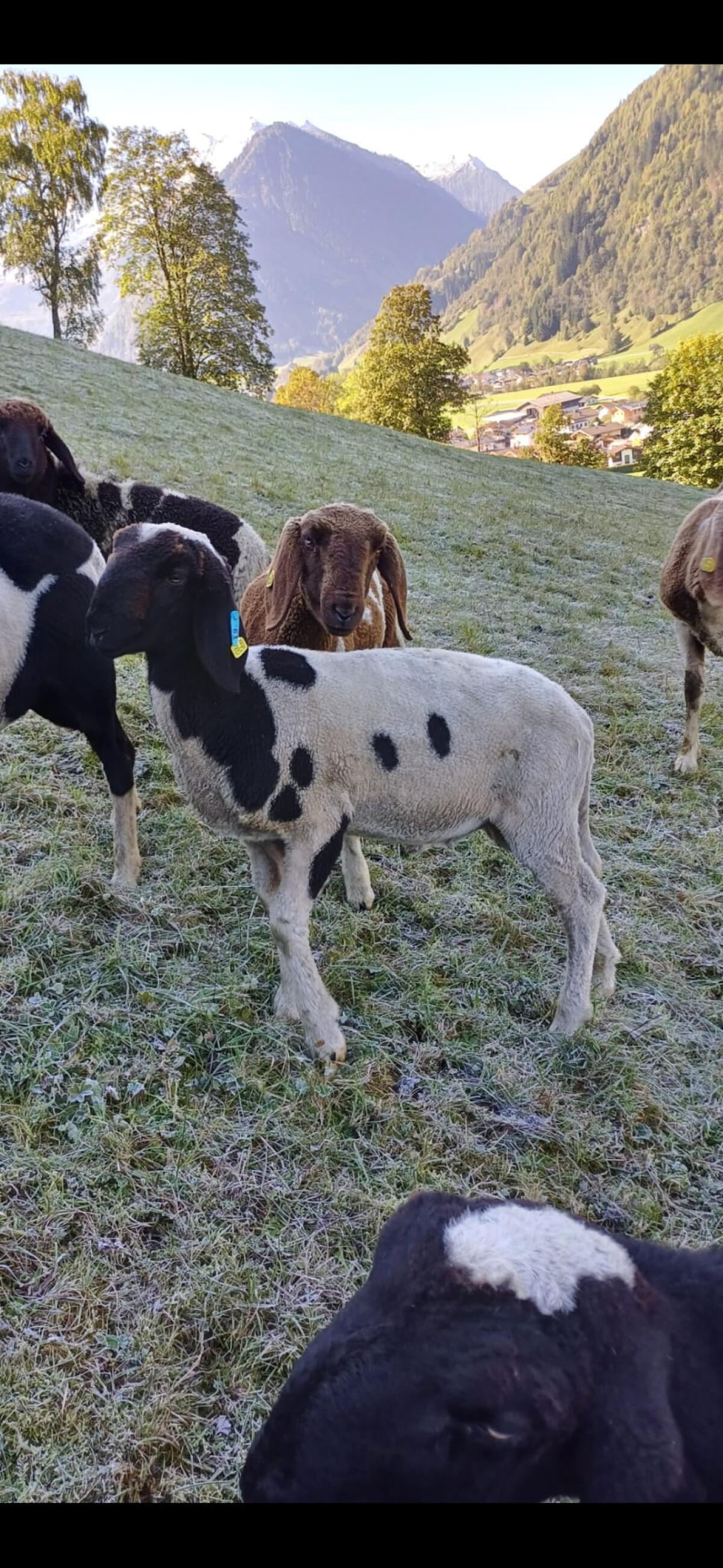 Verkaufe gescheckten Bergschafwidder, geb. am 10.10.23. Er ist brav im Umgang und leinenführig. Kein Hb. Bei Interesse bitte melden. Pecore Pecora di montagna