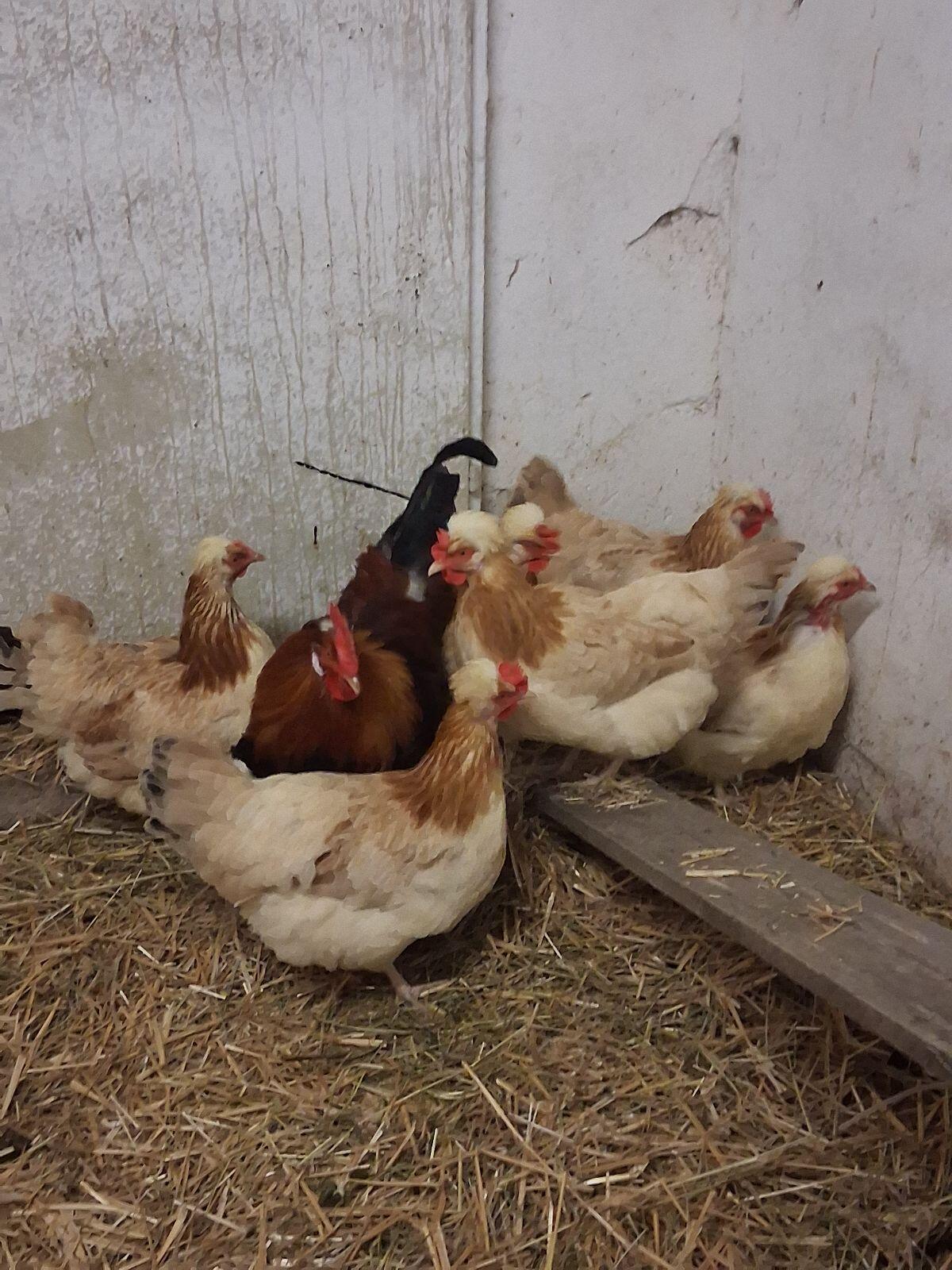 Verkaufe meine Hühnertruppe, weil ich mit den Hühnern aufhöre und mit Enten anfange. In der Truppe gibt es einen Sulmtaler-Maran Hahn, drei Grünleger Hennen, zwei Br