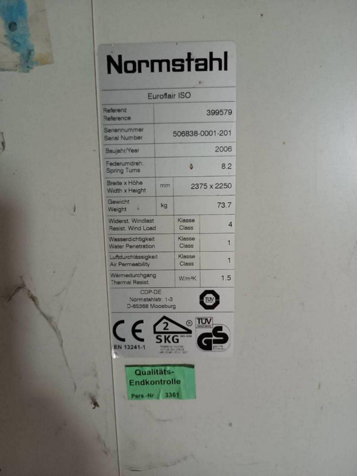 Werkstatt Tor, Falttor, bereits abgebaut, 1 mal mittig geteilt mit Tür, Höhe 260 cm, Breite rechts von innen gesehen 249 cm, Breite links 370 cm, Flügelbreite ca. 80