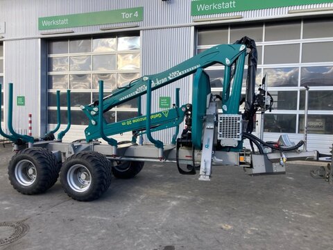 Holzhänger Eigenbau mit Jonsered 590 Kran, Reichweite 7, 5m, Druckluftbremse, Beleuchtung, Ladevolumen 11 FM, Eigenölversorgung über Zapfwellenpumpe, großer Hydraulik