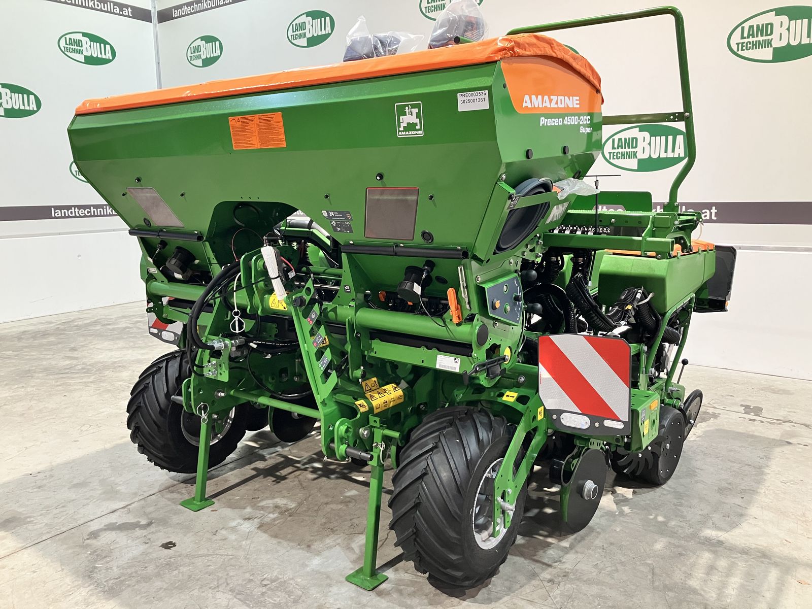 AMAZONE Precea 4500-2CC Einzelkornsämaschine + Bj. 2026, Neumaschine, lagernd + Fahrgeschwindigkeit bis 15 km/h + Sternräumer + Fangrolle + V- Andruckrollen, in Druck und Winkel einstellbar + Vordosierung am Säkörper möglich + 6 reihig variabeler Reihenabstand + ISOBUS Elektronik + elektrischer Säantrieb - Electric Drive + automatischer Abstreifer + Säüberwachung mit Optogeber + +/- Schaltung Aussaatstärke am Monitor + elektrische Reihenabschaltung mit Section Control Schaltung möglich + variabler Reihenabstand - 45, 50, 60, 65, 70 und 75 cm + Abstand absteckbar + Mikrogranulatstreuer elektrisch + +/- Schaltung am Monitor + Düngertank elektrisch + Aufstiegspodest + Leermeldesensor + hydraulischer Gebläseantrieb + Luftansaugtürme + Räder vor Maschine - 26 x 12.00 - 12 + diverse Säscheiben für Mais, Soja, Rübe, etc… erhältlich