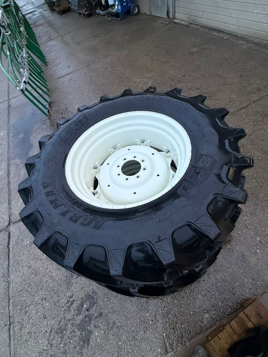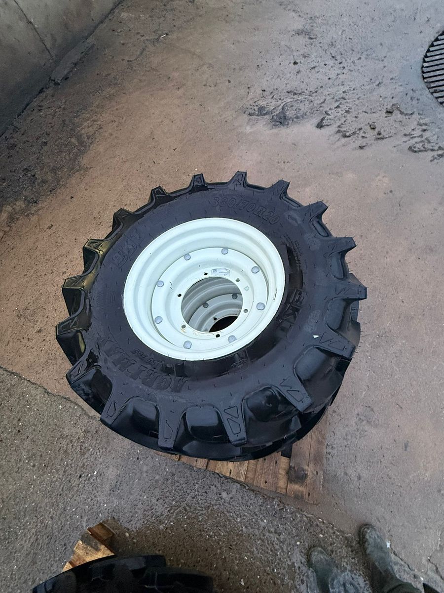 BKT Agrimax Rädersatz – Neu, 100 % Profil Zum Verkauf steht ein kompletter Rädersatz von einem New Holland T4.55, neu, nur wegen Umbereifung demontiert. Hinterräder: BKT Agrimax 480/70 R30 Verstellfelge New Holland 8-Loch Zentralloch: 150 mm Lochkreis (Mitte–Mitte): 205 mm Bolzenloch: 20 mm 100 % Profil Vorderräder: BKT Agrimax 380/70 R20 Verstellfelge New Holland 6-Loch Zentralloch: 250 mm Lochkreis (Mitte–Mitte): 285 mm Bolzenloch: 16 mm 100 % Profil Neu – ideal für alle, die einen hochwertigen und sofort einsatzbereiten Rädersatz suchen.