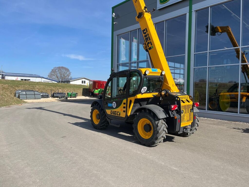 1 gebrauchter Teleskoplader Hersteller: Dieci Modell: Agri Farmer 32.6 Baujahr: 2019 Betriebsstunden: 630 h Seriennummer: TBC1822373 Erfassungsnummer: 175563 Hubkraft: 3200 kg Huibhöhe: 6 Meter Motorleistung: 100PS / 74 KW Kubota (ohne AdBlue) Antrieb: hydrostatisch max. 30 km/h technisch möglich Leergewicht: ca. 5900 kg Höhe: ca. 2,28 m Breite: ca. 2,00 m Bereifung: 400/70R20 Lenkung: 4 Radlenkung Optischer Zustand: sehr gut Pumpenleistung: 115 l/min Steuergerät dw: ja Werkzeugverriegelung hydraulisch Kabine mit Heizung und Lüftung Kabinentür mit elektrischem Fensterheber 3. Kreis vorne mit Umschaltventil Stromversorgung vorne am Teleskoparm LED Arbeitsscheinwerfer inklusive: Adapterrahmen auf Euro Palettengabel und Schaufel Antrieb = hydrostatisch Bereifung = 400/70R20 Geschwindigkeit = 20 Hubhöhe = 6 Hubkraft = 3,2 Lenkung = 4 Rad Pumpenleistung = 115 Steuergerät dw = Ja Werkzeugverriegelung hydr. = Ja