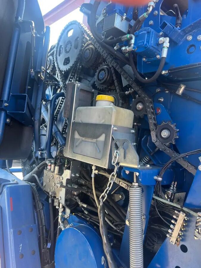 Vollausgestattete KombipresseJg. 2018Ballenzahl: 19500Ab ServiceHydraulikLoad Sensing (kann auch mit Traktoren ohne LS-Pumpe betrieben werden)Pick-UpKurvenbahnlose Pendel-Pickup, DIN Rechbreite: 2,20 m, Zinkenreihen: 6, Zinkenabstand: 51 mm, Kunst-stoffabstreifer, Doppelrollenniederhalter, schwenkbare Luftbereifte TasträderZuführung6-Stern Rotor; Hydraulischer Schwenkboden; Schneidwerk mit 30 Wendemessern;Schnittlänge: 35 mm; Hydraulische BalkensicherungPresskammer18 Stahlwalzen (4 mm) innen verstärkt (inkl. Reiniguns- & Starterwalze);2-reihige PendelrollenlagerBindung mit KamerasystemFolien- und Netzbindung, hydraulisch einstellbare Bremswalze, automatische ÜberwachungDoppelbindungDer Ballen wird zugleich von zwei Netzen oder Mantelfolien gebunden.Die Bindezeit des Ballens verkürzt sich somit um die Hälfte.2 Kameras zur Überwachung der Folienbindung und Ballenablage, inkl. FarbmonitorDeichsel: hydr. KnickdeichselFahrwerk & BereifungTandemachs-Fahrwerk; Reifen: 520/50-R17 Flotation Trac;Br