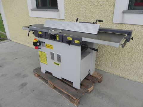 Maschinenständer in verwindungs - und vibrationsfreier Bauweise, extrem standsicher. Schleifaggregat mittels Handrad bis 45° verstellbar. Schleifband - Oszillation mit separatem Getriebemotor. Höhenverstellbarer Schleiftisch zur Ausnutzung der gesamten Bandbreite. Serienmäßige Furnierkantenschleifeinrichtung mit Feineinstellung, Kontaktschuh, Entlastungsrollen und Anschlägen. Höhenverstellbarer Zusatztisch mit Absaugung zum Schleifen von Radien. Mit gefederter Bandspannung.Mit Tischverbreiterung. Made in EU.Technische Daten:Tischgröße 960 x 350 mmTischhöhenverstellung 230 mmBandlänge 3000 mmBandbreite 200 mmBandgeschwindigkeit 20m/secOszillationshub 20 mmMotorleistung Oszillation 0,25 kWHauptmotorabgabeleleistung 3,8 kW S6 400V (3kW S1)Gewicht 400 kgPreisänderungen vorbehalten, Irrtümer, Druck- und Satzfehler vorbehalten