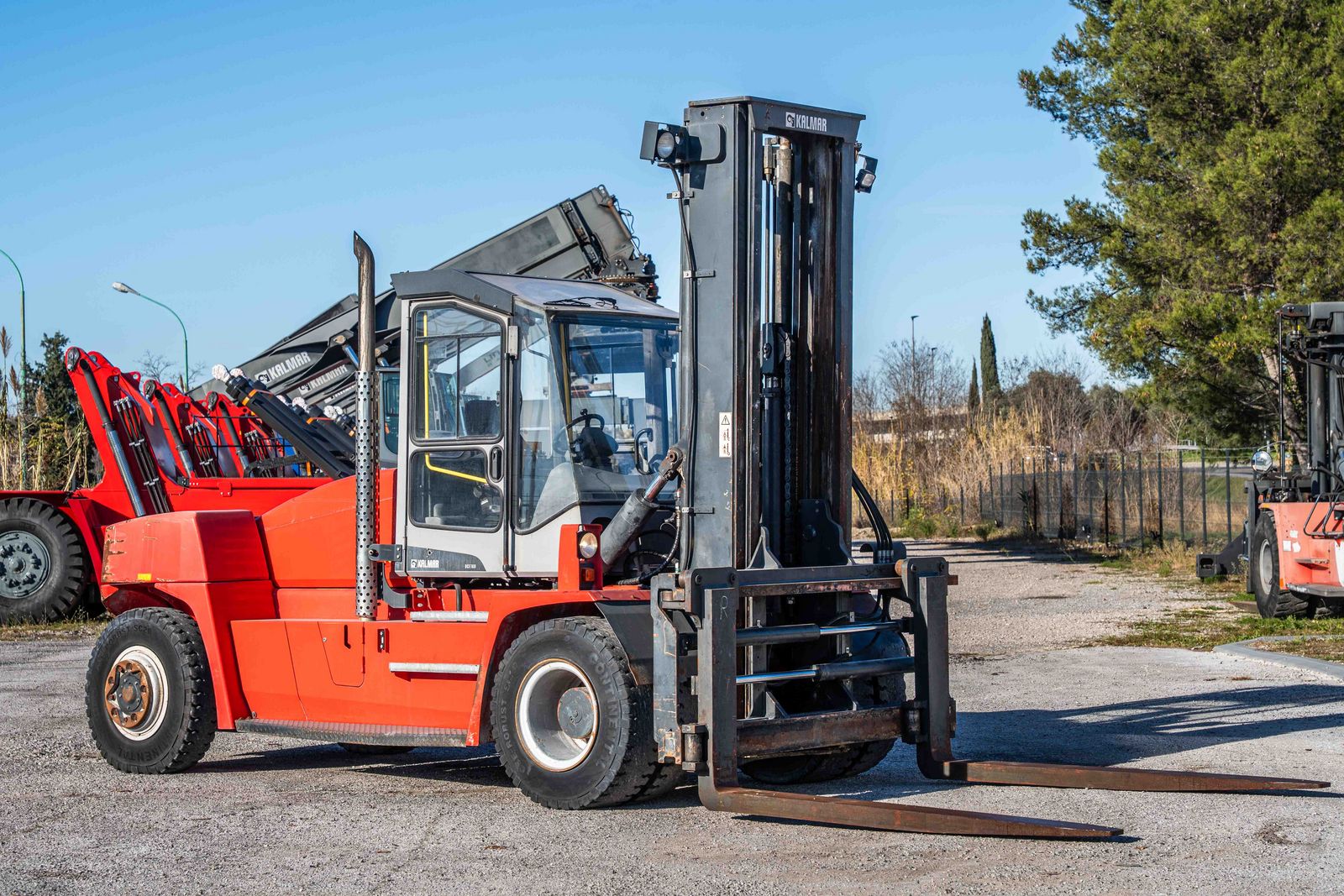 KALMAR-Dieselstapler DCE 160-12 Baujahr: 2012 9316 Betriebsstunden Tragkraft: 16000 kg / 1200 mm LSP Hubmast: Duplex-Freisicht Hubhöhe: 4500 mm Bauhöhe: 3945 mm Freihub: 2250 mm Gabellänge: 2400 mm Bereifung: Luft Motor: 6-Zyl. Volvo-Diesel - Zinkenverstellgerät mit Seitenschieber - Kalmar-Komfort-Kabine "Spirit Delta" mit Heizung u. Radio - STVO-Beleuchtung - Arbeitsscheinwerfer vorne u. hinten GUTER ZUSTAND !!! servicegepflegtes Gerät !!! Für etwaige Rückfragen steht Ihnen Herr Thomas Lehner natürlich gerne zur Verfügung !