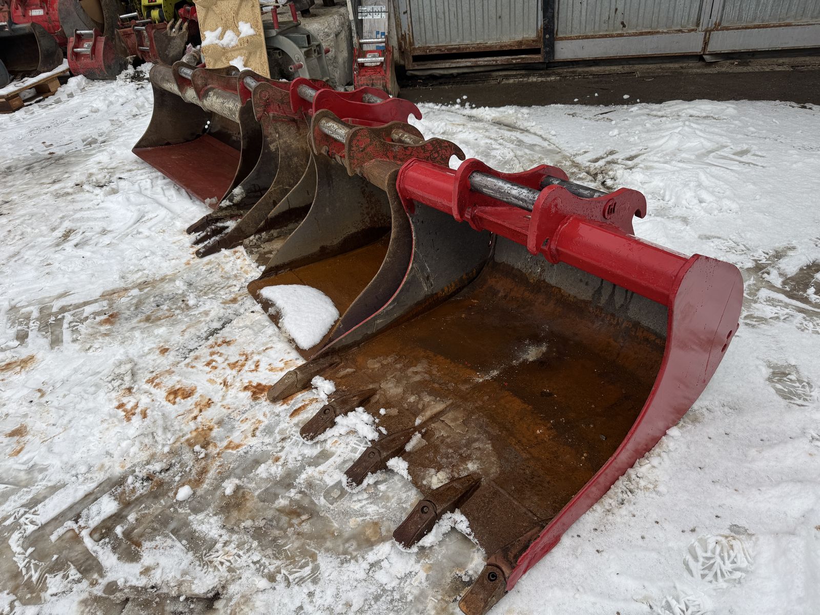 Komplettes Löffelpaket für 5t Bagger 120cm Böschungslöffel (Boden und Schneide erneuert) 90cm Tieflöffel mit Zähnen (Vorgezogen) 60cm Tieflöffel mit Schneide 40cm Tieflöffel mit Schneide 30cm Tieflöffel mit Zähnen Auch einzeln erhältlich Versand möglich