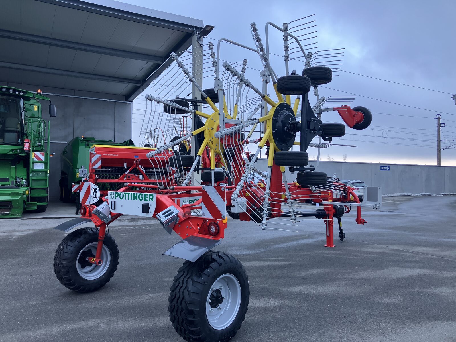Klassifizierung: Neumaschine; Art der Schwadablage: Zentrale Schwadablage; Arbeitsbreite: 6.1; Seriennummer/Fahrgestellnummer: VBP00024016011056; Anzahl Kreisel: 2; Zinkenverlustsicherung: Ja; Anzahl der benötigten Steuergeräte: 1; Weitere Maschinenmerkmale: Pöttinger