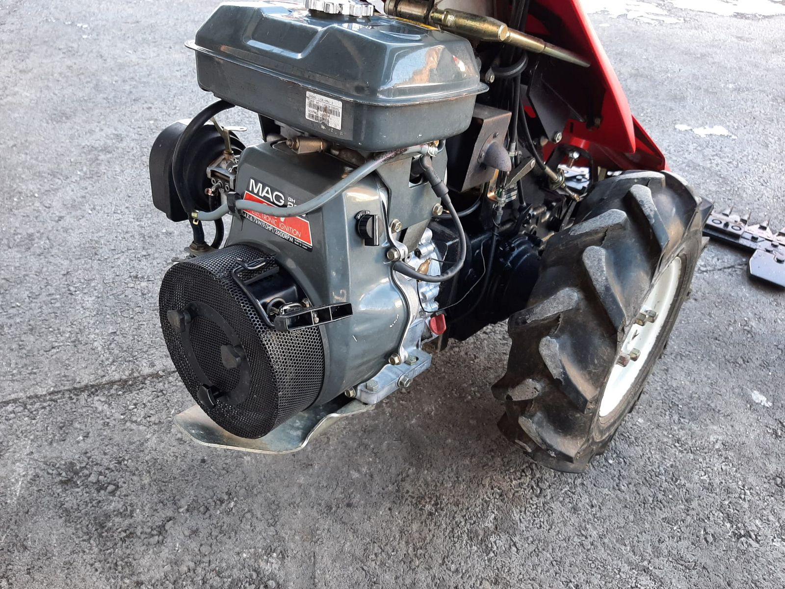 + 4-Takt Motor mit 9 PS und Handstart + Getriebe mit 3 V und 1 R Gang + Differentialsperre schaltbar für leichtes Drehen + Ölbadgelagerter Mähantrieb/Rotationsantrieb + Freischneidebalken 160 cm + Gummiräder 5.00-10 + 1 Messer neu aufgeklingt + Montage von Stachelwalze möglich