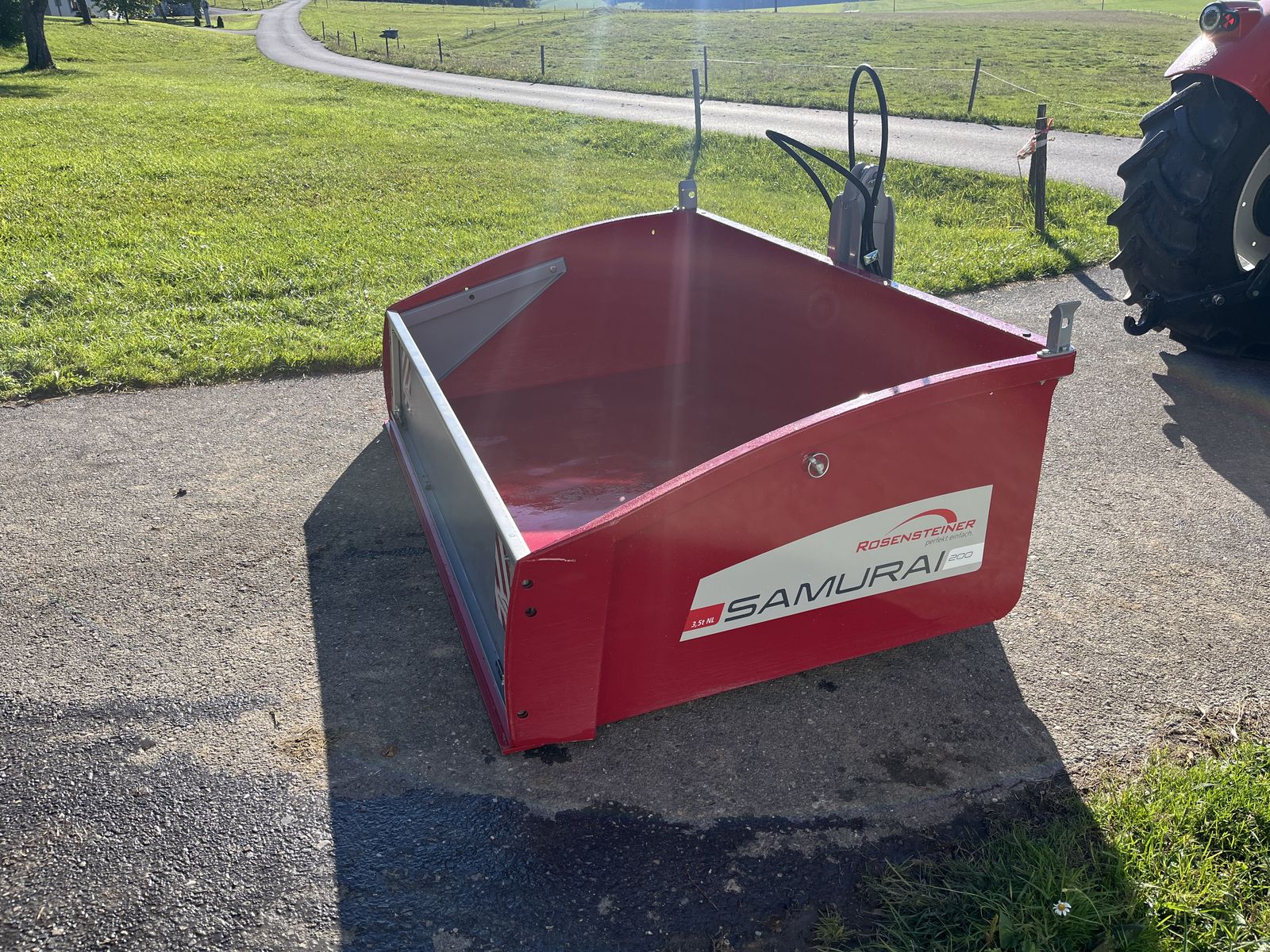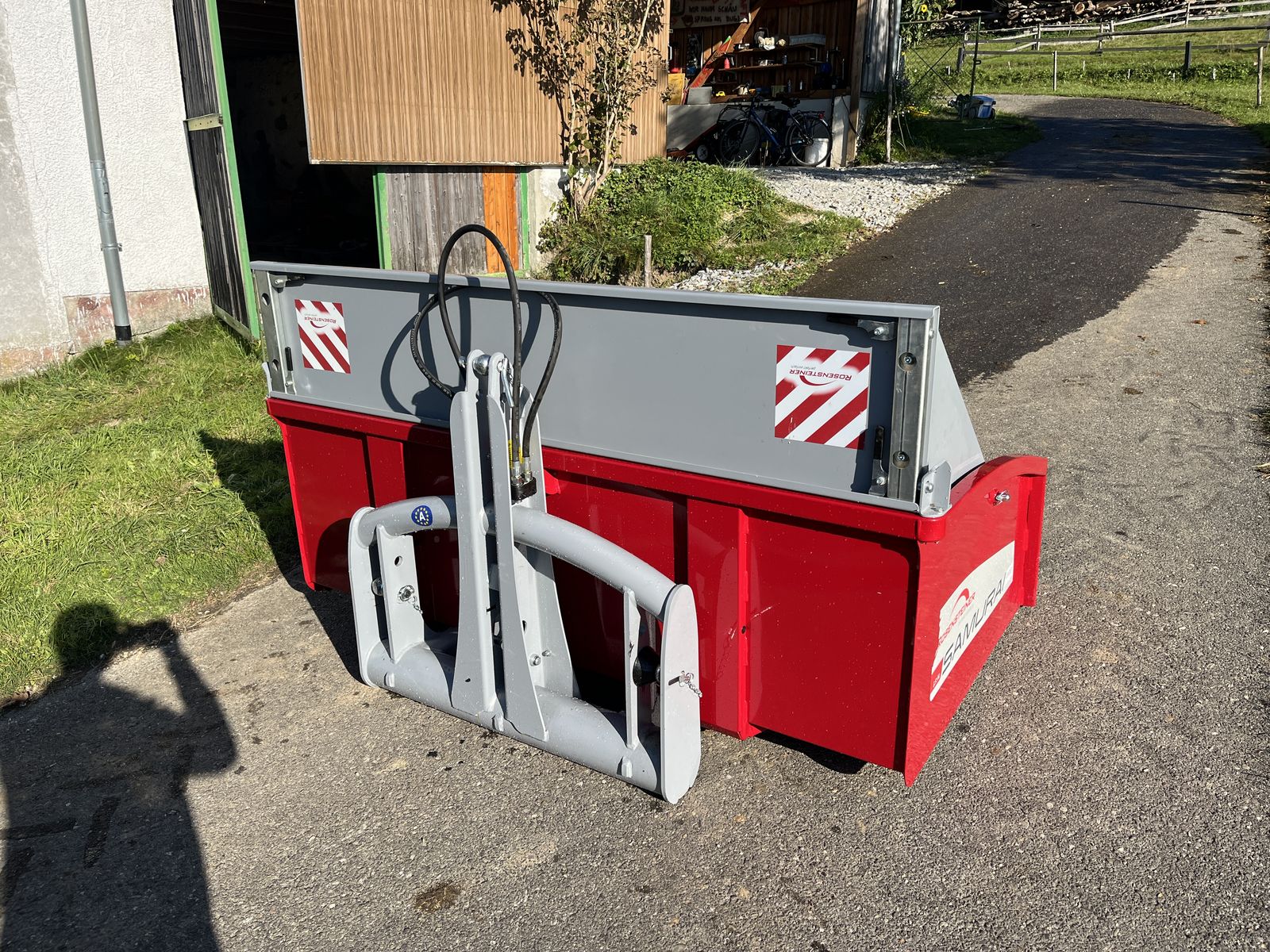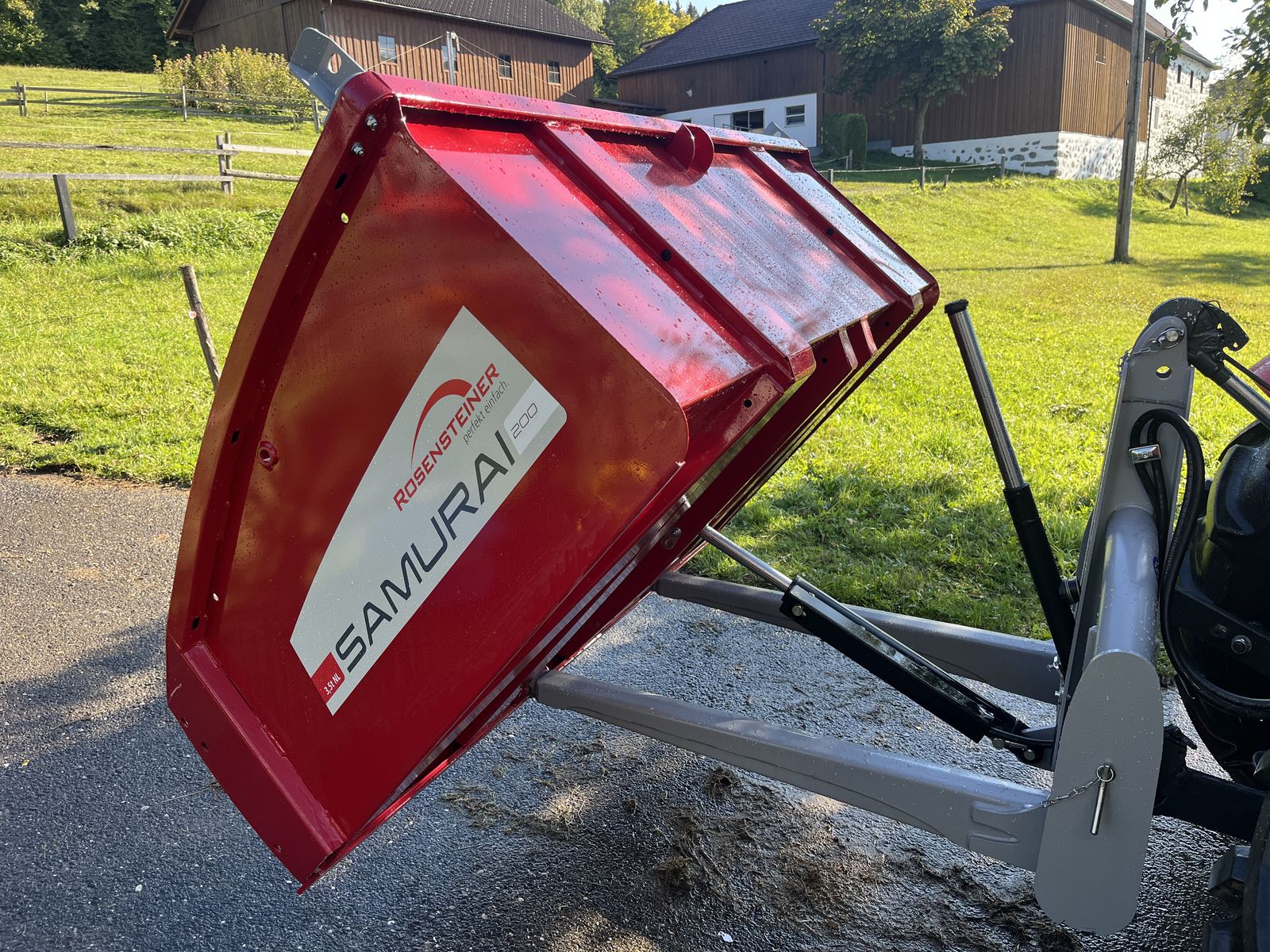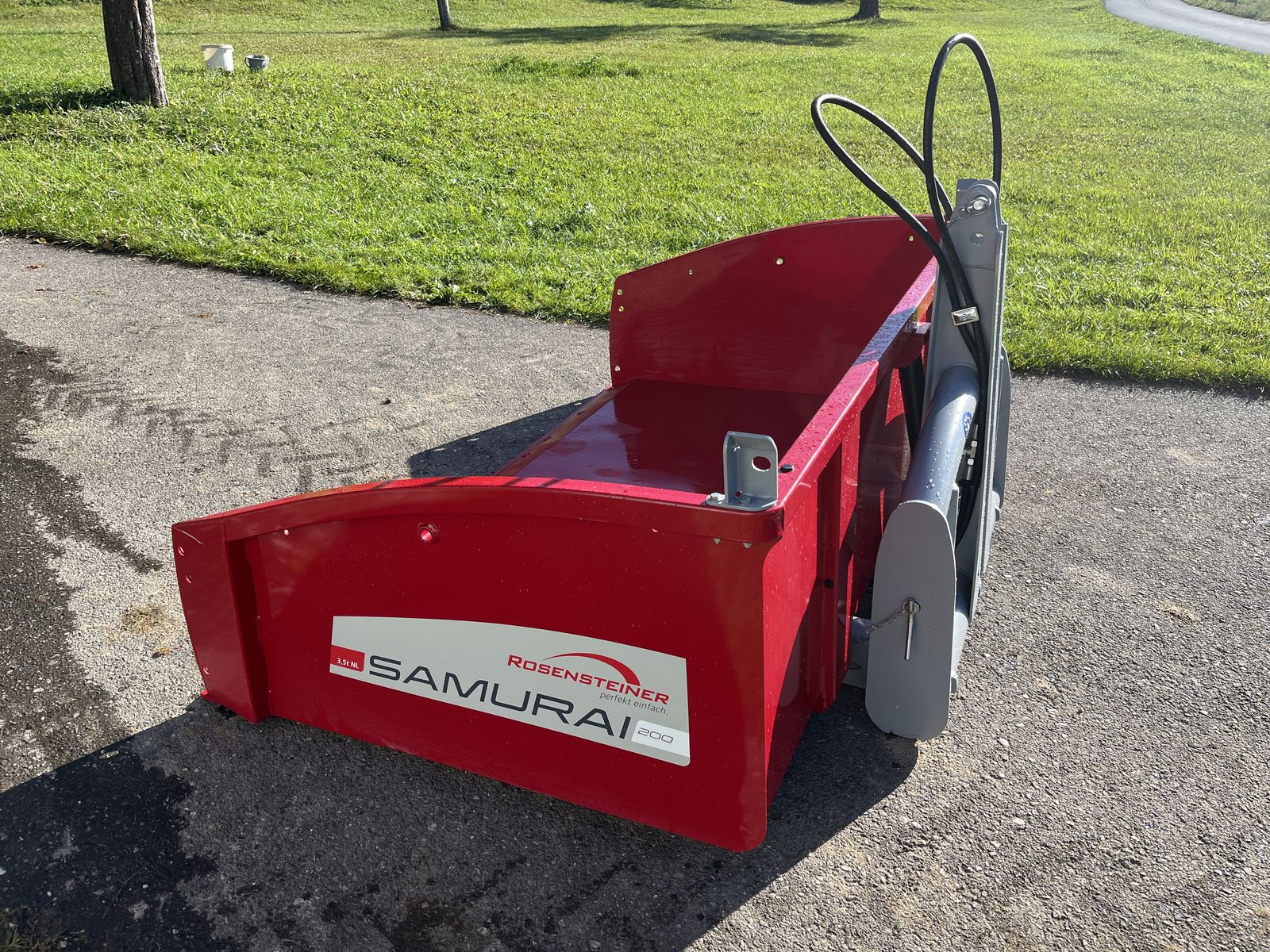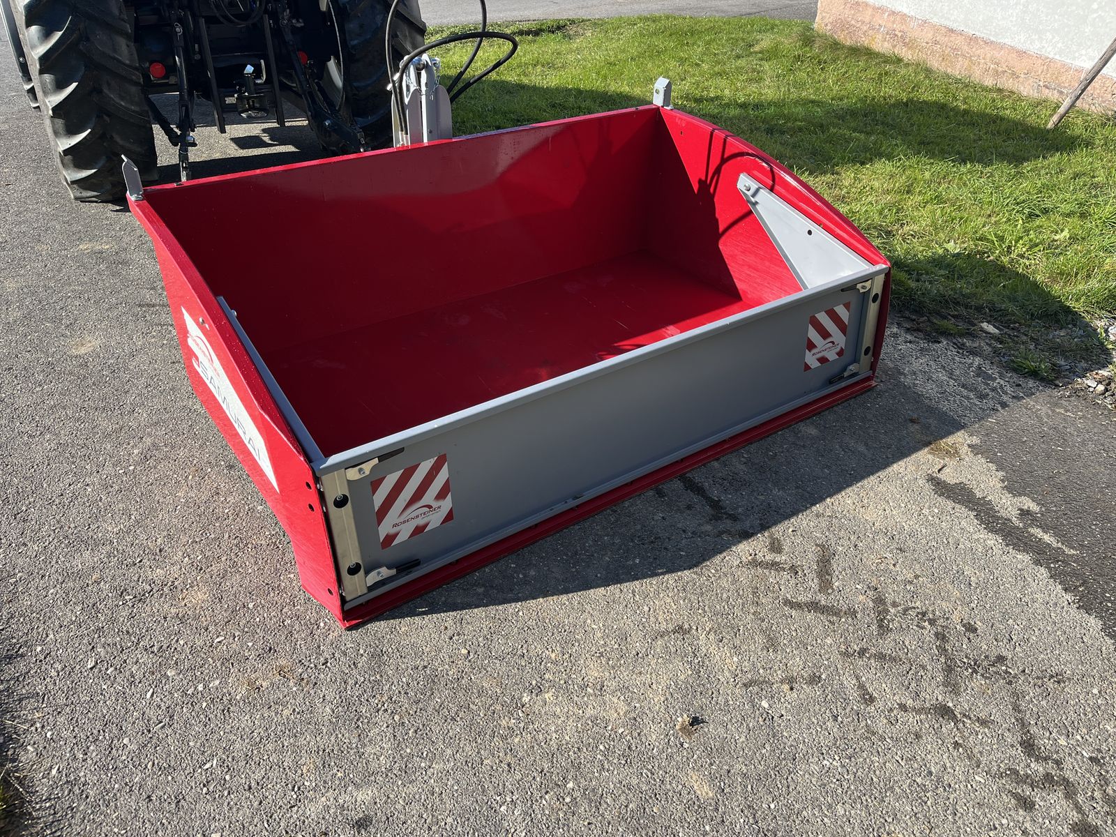 Lackierung pulverbeschichtet: Mulde RAL 3003, Dreipunkt & Bordwand RAL 7046