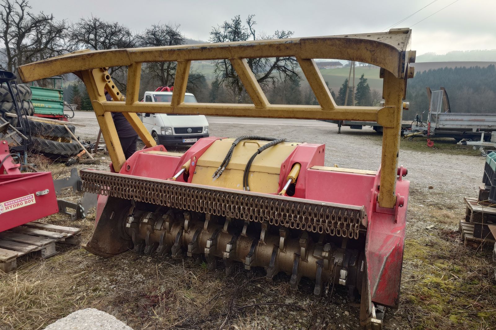 Seppi Forstmulcher mit 2,25m Arbeitsbreite, mulcht Gehölz bis 40 cm, zum Einsatz an Traktorn bis 260 PS, mit ADAM Getriebeneigung, hydraulischer Auswurfklappe, hydr. Maschinenneigung und mechanischer Drückevorrichtung. Der Zustand der Werkzeuge ist wie auf den Bildern ersichtlich bei ca. 40%. Eigengewicht 3300 kg