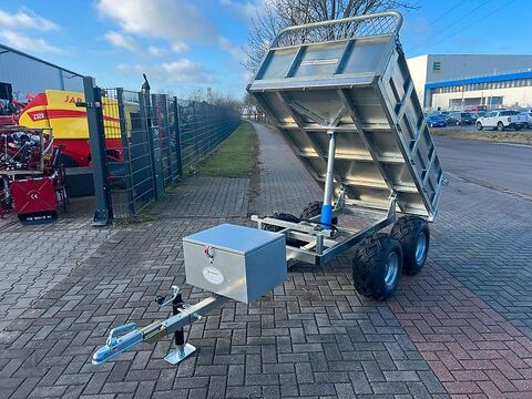 Besuchen Sie auch unseren Online-Shop: www.traktorshop24. com Preis inklusive gesetzlich gültiger MwSt. Anhänger ATV TR1400 Kipper 1400 kg Nutzlast Tandem Achse Ideal als Anhänger für ATV/ Quad und Traktoren geeignet. Die Kippung des Anhängers erfolgt elektro-hydraulisch, mit Hilfe einer Fernbedienung. Im Lieferumfang ist eine Batterie enthalten, die für das Kippen der Ladefläche sorgt. Technische Daten: - Nutzlast: 1400 kg - Abmessungen Ladefläche 200 x 107 x 40 cm - Gewicht: 220 kg - inklusive Elektro-Hydraulik Motor 12V - für das Kippen - kippbare Ladefläche - inklusive Kugelkopfkupplung - Bereifung 22x11-10 - inklusive Staubox für Fernbedienung - inklusive Stützfuss Transportkosten innerhalb Deutschland: 149,00 Euro inkl. MwSt. Transportkosten innerhalb Europa: auf Anfrage Jeder Kunde kann die Maschine natürlich auch bei uns vor Ort, in Osterweddingen, besichtigen und bei Gefallen auch sofort mitnehmen. Alternativ kann die Maschine auch europaweit per Spedition auf Palette geliefert werden. Wir haben auch Mulcher, Mähwerke, Kreiselmähwerke, Bodenumkehrfräsen, Frontlader, Heckbagger, Pflüge, Transportboxen, Palettengabeln, Anhänger, u.v.m. VEMAC GmbH Lange Göhren 7b 39171 Osterweddingen Tel. 039205 - 43 46 10 Fax. 039205 - 43 46 11 www.traktorshop24. com