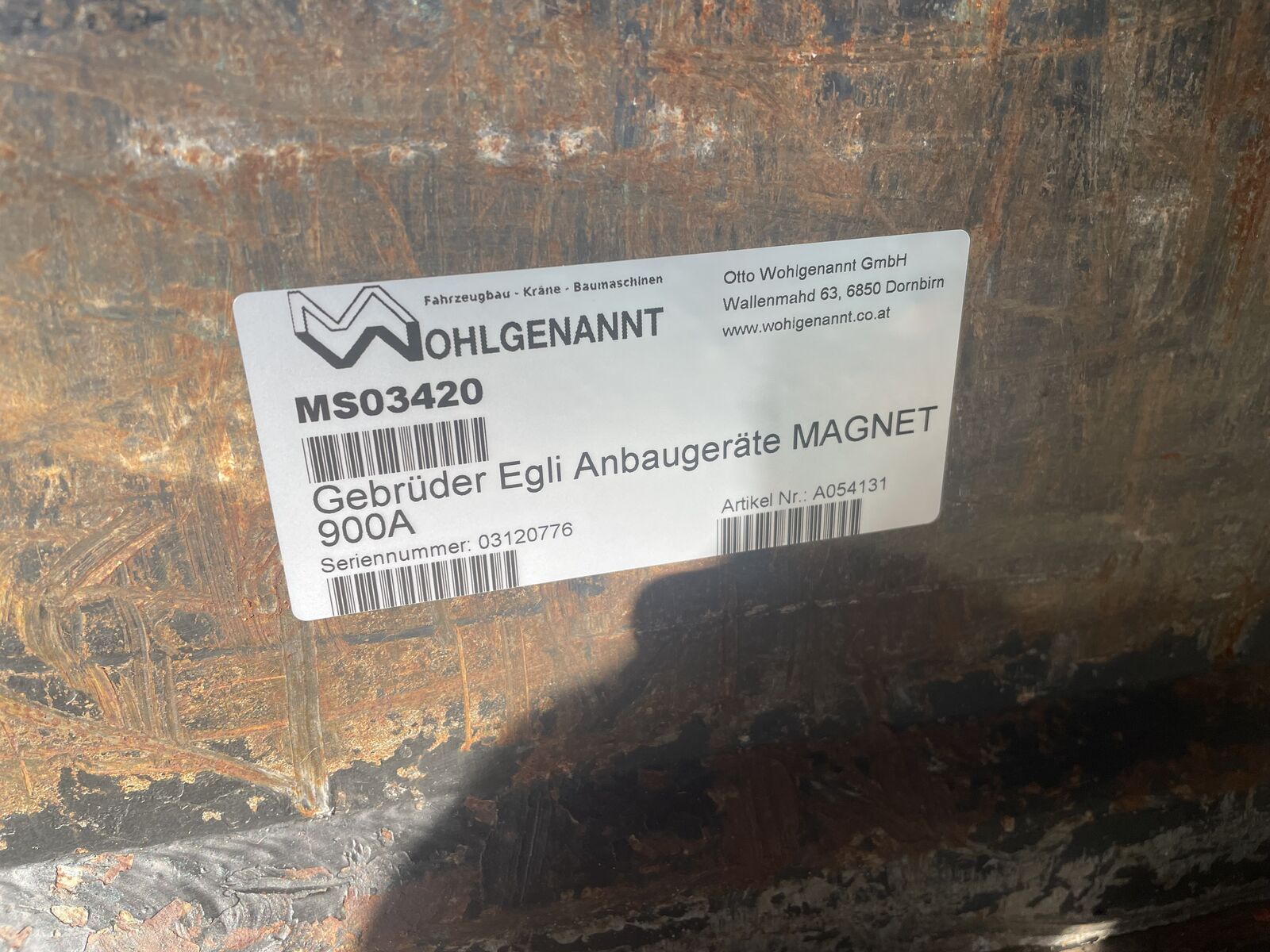 EGLI Magnet 900A für Baggergrössen von 20to bis 30to Aufnahme OQ70