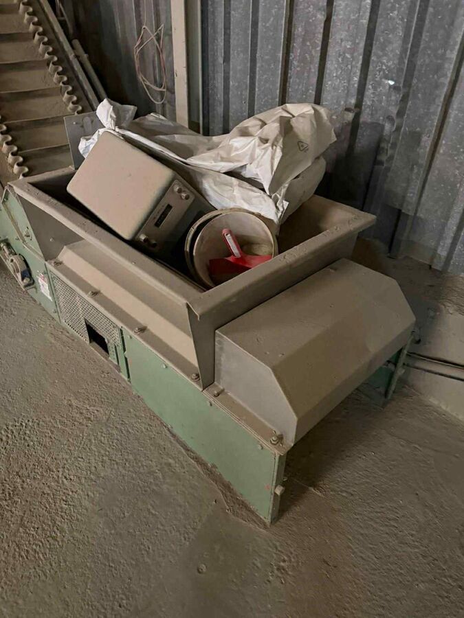Neuwertiges Förderband 600 x 1.370 x 7.500mm (Int. Nr. 17011) IMRO-Förderband CNL-L NewLine, RecycleCraft Neuwertig 600mm x 1.370mm x 7.500mm Bandgerüst aus Vierkantrohr 50/30/3, verschweißt Bandstützen höhenverstellbar (+/- 50cm) Notaus-Taster beidseitig Fördergeschwindigkeit ca. 0,8 m/s Querstabiler PVC-Gurt Gurt mit T Stollen 50mm alle 150mm Flexowellrandleisten 60mm Gurtbreite 600mm Nutzbare Gurtbreite 350mm Achsabstand 1: 1.370mm (Horizontalförderung) Achsabstand 2: 7.500mm (Schrägförderung 48°) Rücklaufrollen Ø63,5/20mm wartungsfrei und staubdicht gelagert, Gummistützringe Ø108mm Antriebstrommel Ø180mm gummiert, Spannsatzverbindung Welle-Trommel Umlenktrommel Ø164mm mit Spannspindel, Spannsatzverbindung Welle-Trommel SKF gelagert Pflug-Innengurtabstreifer Aufgabetrichter mit Dosierschieber (Edelstahl) Abwurfhaube aus Edelstahlblech, Klappkasten 45°, 300x2mm Abwurfhaube inkl. Klappendichtung und 230V Zylindereinheit Untergurtverkleidung aus Edelstahlblech mit Reinigungsklappe Aufsteckgetriebemotor SEW Eurodrive Antriebsseite rechts 2,2kW 230/240V 50Hz. IP 54 Sehr wenig gearbeitet! Es handelt sich hierbei lediglich um eine Anzeige, die zu Informationszwecken dient. Der Kaufvertrag kann nach unseren AGBs mit uns abgeschlossen werden. Gerne kümmern wir uns um Finanzierungsmöglichkeiten im In-und Ausland. Es besteht die Möglichkeit der Inzahlungnahme anderer Maschinen.
