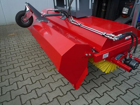 EURO - Jabelmann Kehrmaschinen: Arbeitsbreite 1500 - 2500 mm, PPN-Kehrwalze mit Ø 520 mm, hydraulische Wannenentleerung, Spritzschutz, hydraulischer Antrieb mit Schläuchen und Kupplungen, höhenverstellbare Stützräder mit Metallfelgen, Extra Lagerung am Hydraulikmotor Alle Kehrmaschinen werden bei uns hergestellt und haben eine Pulverbeschichtung (Einbrennlackierung) Modell SKM Anbaukehrmaschinen für Schlepperdreipunkt in Heckanbau, Kat. II Modell GSKM Anbaukehrmaschinen für Gabelstapler, Radlader, Hoftrac und Frontlader, mit Niveauausgleich und vorderem Stützrad. Einfahrtaschen B/H: 200x70 mm Unsere Modelle für Schlepperanbau: V 1501 SKM, 1500 mm breit, EUR 3.300,-- V 1751 SKM, 1750 mm breit, EUR 3.450,-- V 2001 SKM, 2000 mm breit, EUR 3.600,-- V 2251 SKM, 2250 mm breit, EUR 3.750,-- V 2501 SKM, 2500 mm breit, EUR 3.900,-- Unsere Modelle für Gabelstapler: V 1501 GSKM, 1500 mm breit, EUR 3.450,-- V 1751 GSKM, 1750 mm breit, EUR 3.600,-- V 2001 GSKM, 2000 mm breit, EUR 3.750,-- V 2251 GSKM, 2250 mm breit, EUR 3.900,-- V 2501 GSKM, 2500 mm breit, EUR 4.050,-- Mehrpreise: - Seitenkehrbesen 600 mm EUR 1.100,-- - Wassersprüheinrichtung m. Tank + Pumpe EUR 1.400,-- - Wassersprüheinrichtung für Seitenbesen EUR 250,-- - Spezialbesen Laub/Schnee auf Anfrage - Spezialbesen Nylon/Stahl auf Anfrage - Kat. I statt Kat. II auf Anfrage Alle Kehrmaschinen sind nun standardmäßig mit einer komfortablen hydraulischen Wannenentleerung ausgestattet. Das Volumen der Sammelwanne wurde um 10% erhöht, so dass eine effektivere Nutzung der Maschine gewährleistet ist. Besonders hervorzuheben ist die beidseitige Lagerung der Kehrwelle, wodurch eine Langlebigkeit des Hydraulikmotors gesichert wird. Eine deutliche optische Aufwertung wurde durch eine neue Formgebung und der Farbkombination rot und grau erzielt. Die Kehrmaschinen werden mit einer hochwertigen Pulverbeschichtung versehen und garantieren so eine lange Haltbarkeit der Oberflächen. Die Modelle für den Schlepperanbau sind für die Kat.-II-Aufnahme vorgesehen, optional ist die Kat.-I-Aufnahme erhältlich. Zur Aufnahme durch den Gabelstapler, Radlader und Hoftrac sind Einfahrtaschen vorhanden und die Kehrmaschine ist mit Niveauausgleich und vorderem Stützrad ausgerüstet. Weiterhin serienmäßig ist die Ausrüstung mit einer 520 mm PPN-Kehrwalze, wodurch eine niedrige Maschinenhöhe erreicht und somit ein guter und sicherer Blick des Fahrers über das Gerät auf den Boden ermöglicht wird. Auch ein Spritzschutz, der hydraulische Antrieb mit Schläuchen und Kupplungen, die per Spindel höhenverstellbaren Stützräder mit Metallfelgen und die Schrägstelleinrichtung sind serienmäßig. Als weitere Optionen ist ein Seitenkehrbesen mit 600 mm Durchmesser, eine Wassersprüheinrichtung zur Staubbindung sowohl für die komplette Arbeitsbreite als auch für den Seitenbesen, die Ausstattung der Maschine mit den Spezialkehrbesen Schnee-Laub und Nylon-Stahl sowie Adapteranschlüsse für Weidemann und Schäffer Hoftracs vorhanden. Der Spezialbesen Nylon-Stahl erzielt bei starken und getrockneten Verschmutzungen und auch in der Wildkrautbekämpfung ein zuverlässiges Ergebnis. Die komplette Herstellung der Kehrmaschinen findet im eigenen Maschinenbau in Itterbeck statt. Alle Preise zzgl. Mwst ab Lager Itterbeck