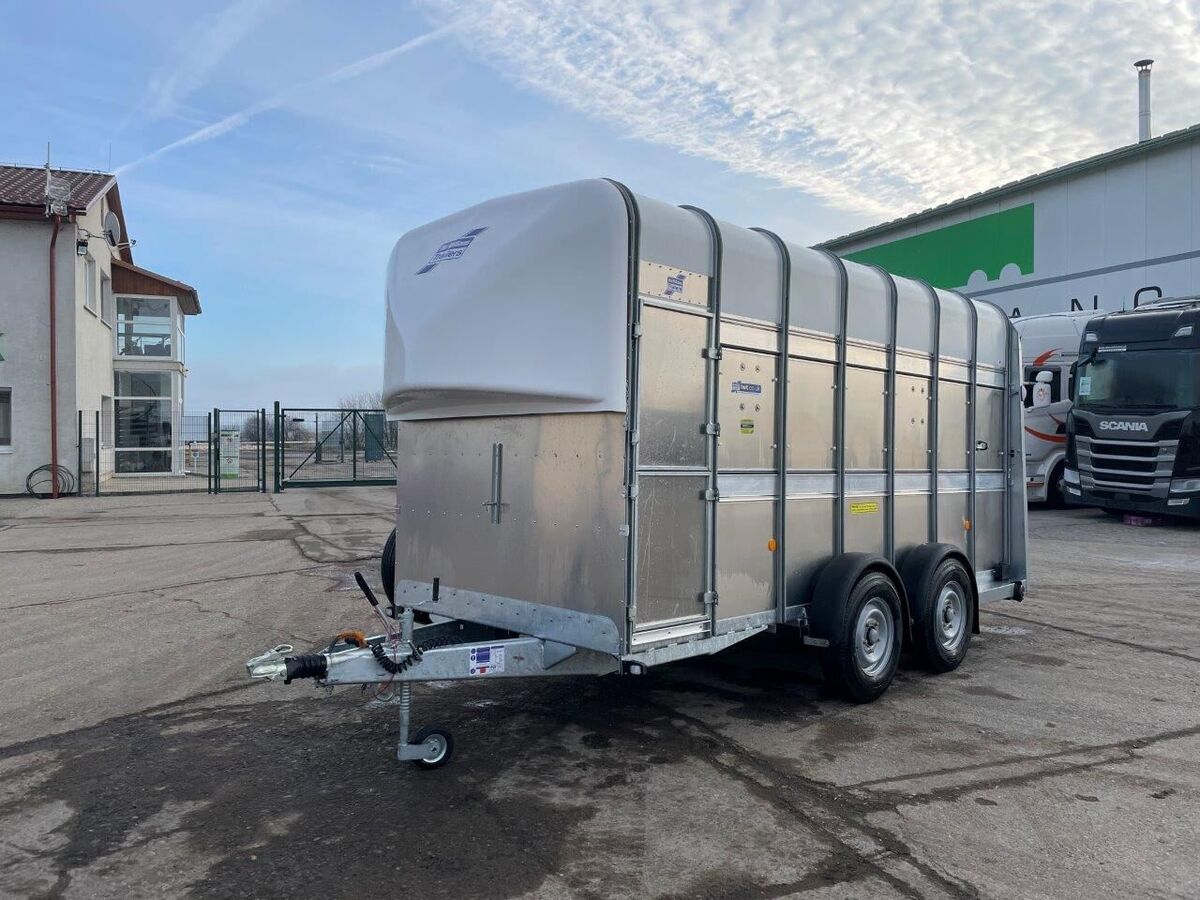 IFOR WILLIAMS TA35 dvojnápravový samobrzdený vozík na prepravu dobytka a koní, nový neregistrovaný, bubnové brzdy, vnútorná D: 4,35 m, Š: 1,75 m, V: 2,14 m, možnosť oddelenia dobytka deliacou prepážkou, možnosť konskou prepážkou , CENA: 13.900 EUR + DPH