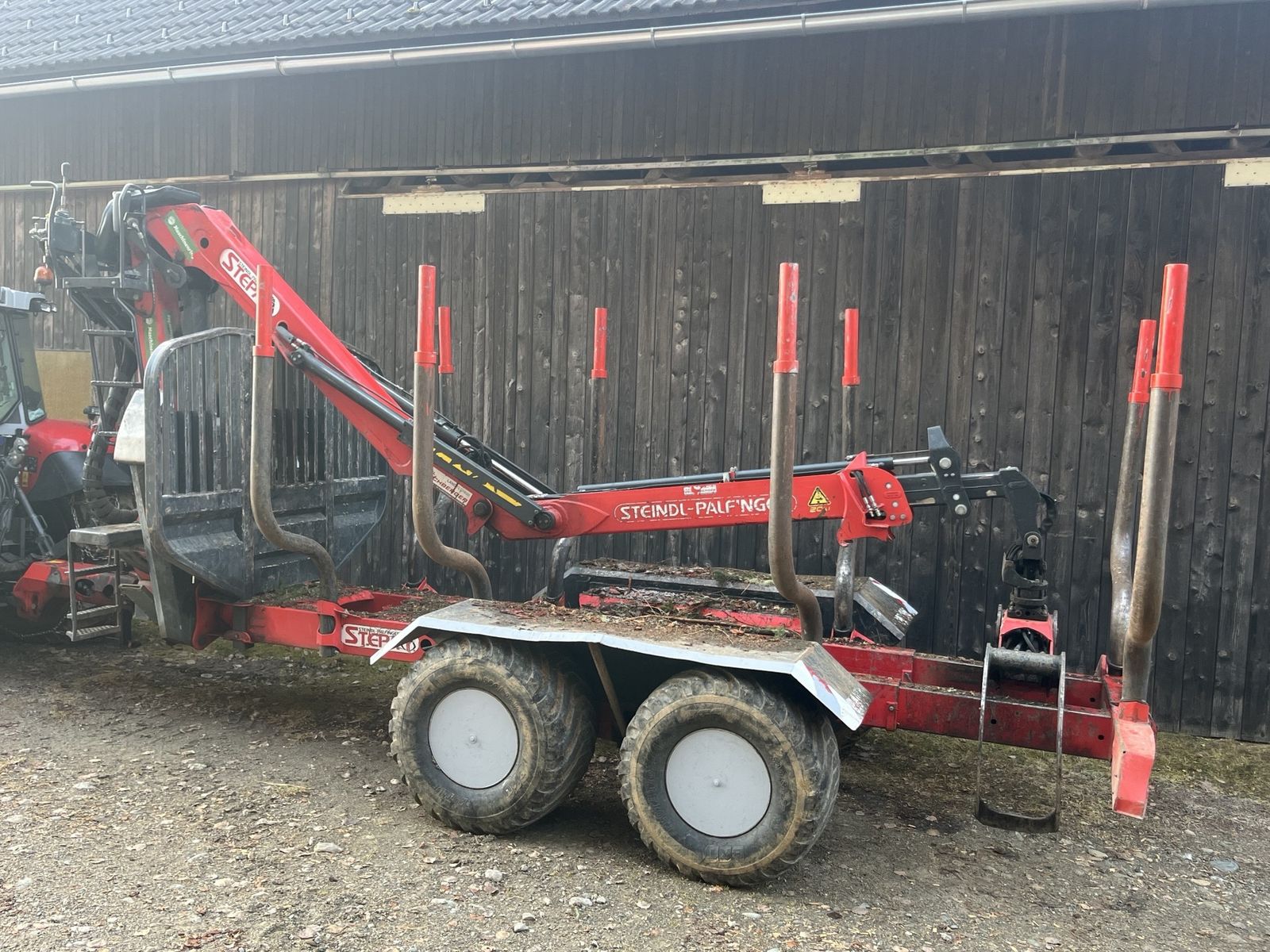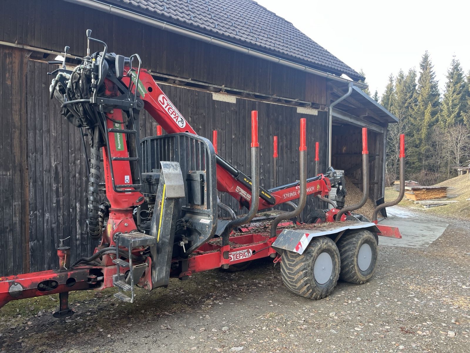 Stepa Forstanhänger FHL13AK mit Z- Kran FKZ6284, Eigenölversorgung mit Weitwinkelgelenkwelle, Stützfuß mit Kurbel, Hochsitzsteuerung, Flap Down Abstützung, Druckluftbremse auf beiden Achsen, Bereifung 500/50-17 mit Felgenschutz. Weiter Informationen gerne telefonisch.