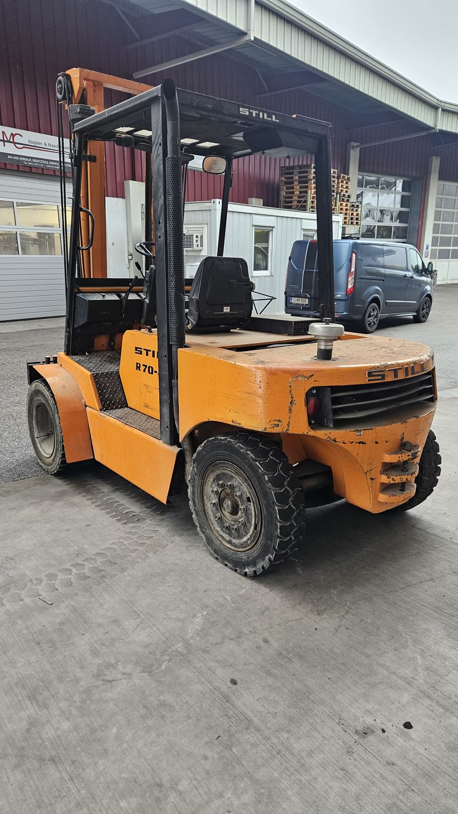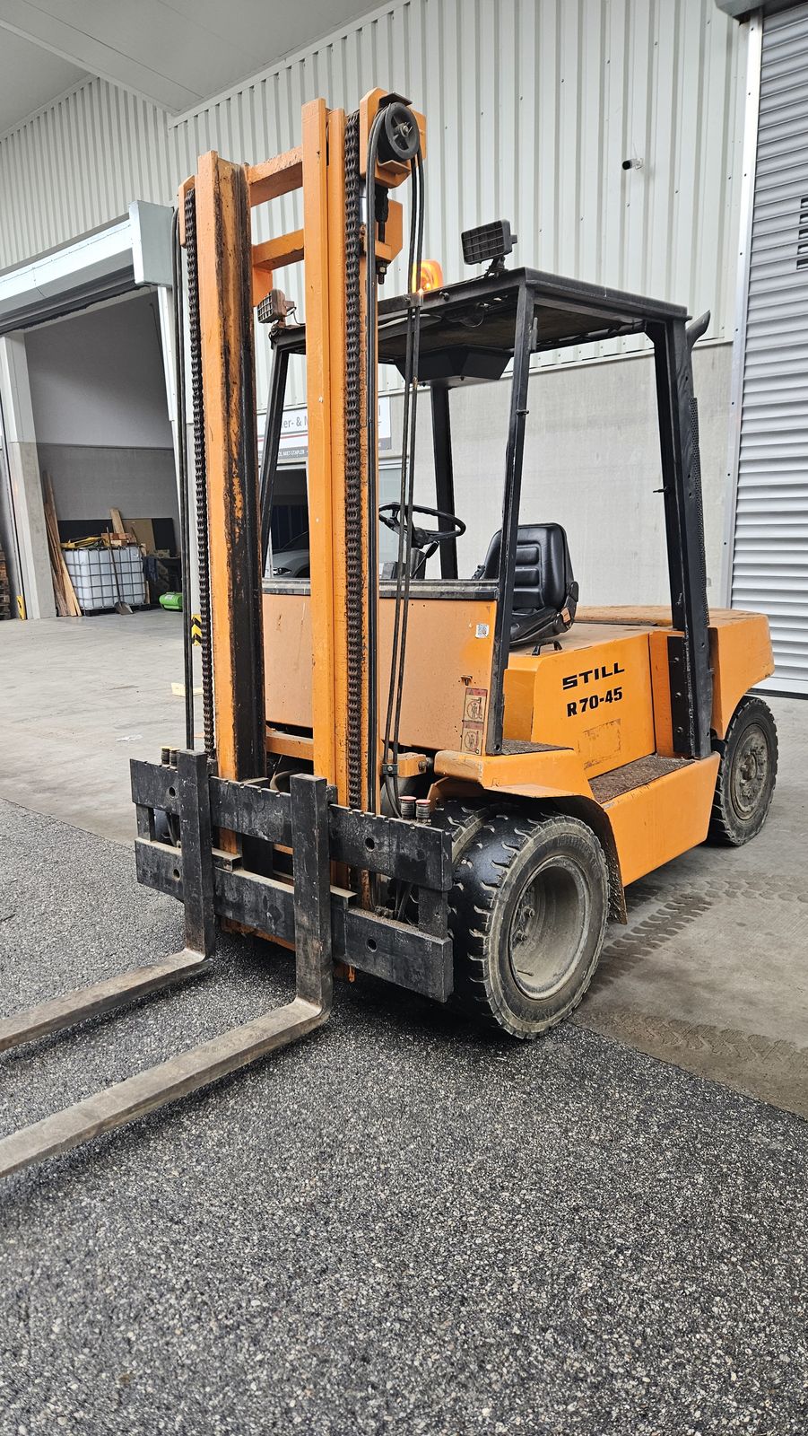 Hersteller: Still, Typ: R70-45, Tragkraft 4500kg, Antrieb: Diesel Frontgabel-Stapler, Baujahr: 1989, Betriebsstunden: 637 lt. Anzeige, Hubgerüst: Standard Freisicht, Hubhöhe: 4000mm Bauhöhe: 2800mm Freihub: 150mm Gabelträgerbreite: 1600mm, Zwillingsbereift, Gabelzinken: 1200x120x50mm, Fahrerschutzrahmen Anbaugerät: Zusatzhydraulik: 3 u. 4 Ventil, Bemerkung: IST-Zustand, fahrbereit,