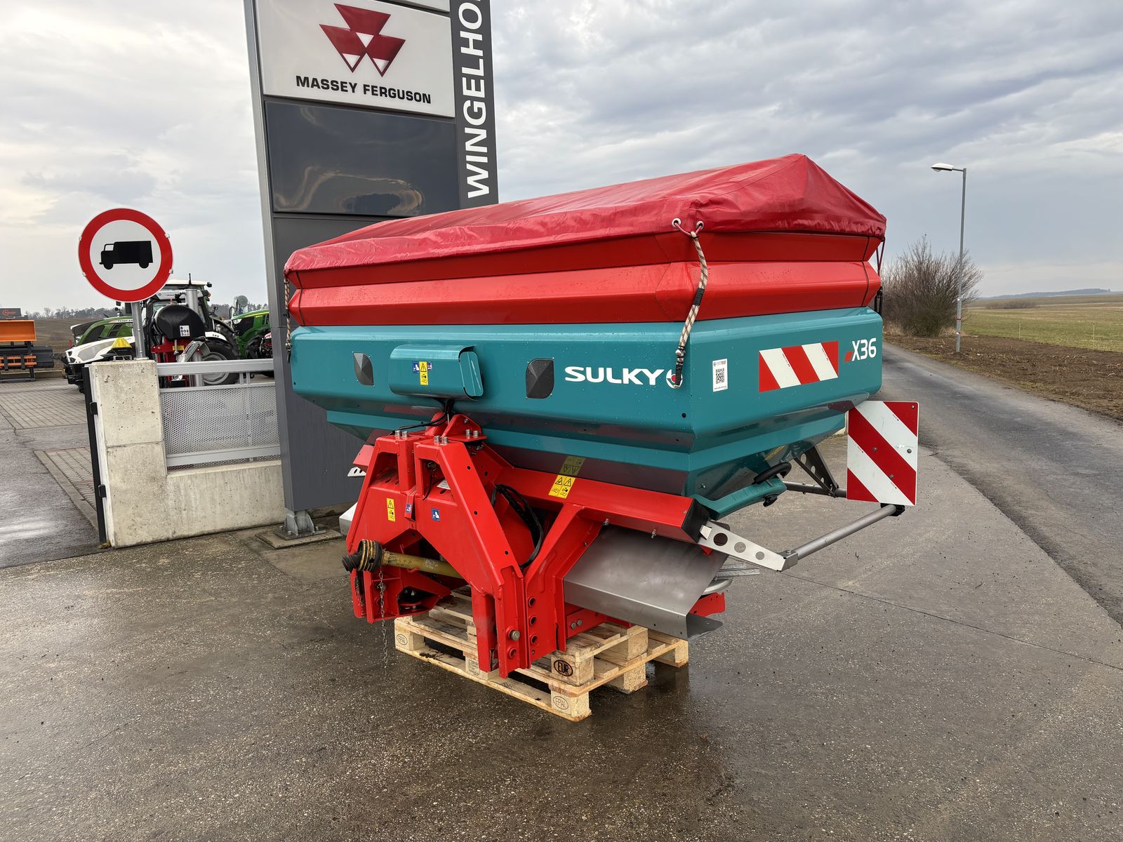 - Wiegestreuer - 3000 Liter - klappbare Abdeckplane - Grenzstreuvorrichtung - Antrieb: Zapfwelle - Stop & Go mit elektrischer Bedienung - manuelles öffnen/schließen einer oder beider Dosierschieber - Streuscheiben R 12-28 S - Bedienterminal - Hektarzähler - GPS-Halbseitenschaltung nachrüstbar