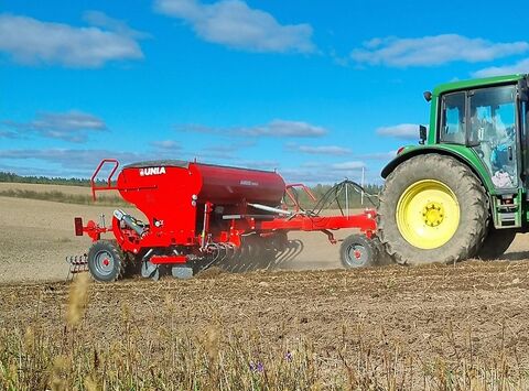 Basisausstattung =========== Einscheibenschare ø400 mm, Schardruck P = 100 kg mit Gummifederung, Zweiteilige, integrierte , Nockenaussaaträder für Getreide und Raps, Feinsamen, Stufenloser Getriebekasten, Plane für den Behälter, Reifenpackerwalze 670mm, Diagonalreifen 195×15 mm, Arbeitsdeichsel + drehbare Front-Packerwalze, Hydraulisch klappbare Spuranreißer auf zwei Hydraulikzylindern, Elektrische Fahrgassenschaltung, Steuerpanel STARTER SEED, Striegel. Weiteres Zubehör gegen Aufpreis möglich! -Kurzscheibenegge mit Ø 460mm Scheiben und Reibenwalze Ø670mm -Reifenpackerwalze Ø 800mm -u.v.m. zzgl. Vorfracht und Betriebserlaubnis Fordern Sie unsere Prospekte an. Wir beraten Sie gerne. Besuchen Sie unsere ständige Ausstellung auf unserem Gelände und auf den Messen vom 06.03.26 - 09.03.26 Frühlingsmesse Ostheim 09.04.26 - 12.04.26 AGRA Leipzig Wir freuen uns auf Ihren Besuch! ! Technische Daten und Bilder können unterschiedlich sein! Preise aufgrund der aktuellen Situation unter Vorbehalt!