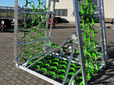 Zocon Wiesenegge 6m Lagermaschine Spezifikationen: • Feuerverzinkter, robuster, modularer Rahmen • Schwere drehbare Kombi-Netze mit 14mm Ringe • Bogenschäkel mit Verriegelung zum schnellen Wechsel des Netzes • Laser geschnittene Haken für extra Beständigkeit • Dreipunktsbetrieb Kat.2 • Mechanischen Verriegelung der 2x Zylinder • Sehr robuste Schaniergelenke • Gleitschuhe und Eckenschutz • Hydraulik schön verarbeitet • Transportbreite 2310mm • Arbeitsbreite 6m • 4 Reihen mit robuster, schwerer Sternen • Gewicht 715kg