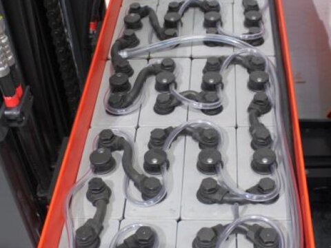 - Aquamatic auf Batterie- Fahrzeugstecker MRC 160A- seitlicher Batteriewechsel mit Rollen- Spannungswandler- Fahrzeug: Einfachzusatzhydraulik- Mast: Einfachzusa