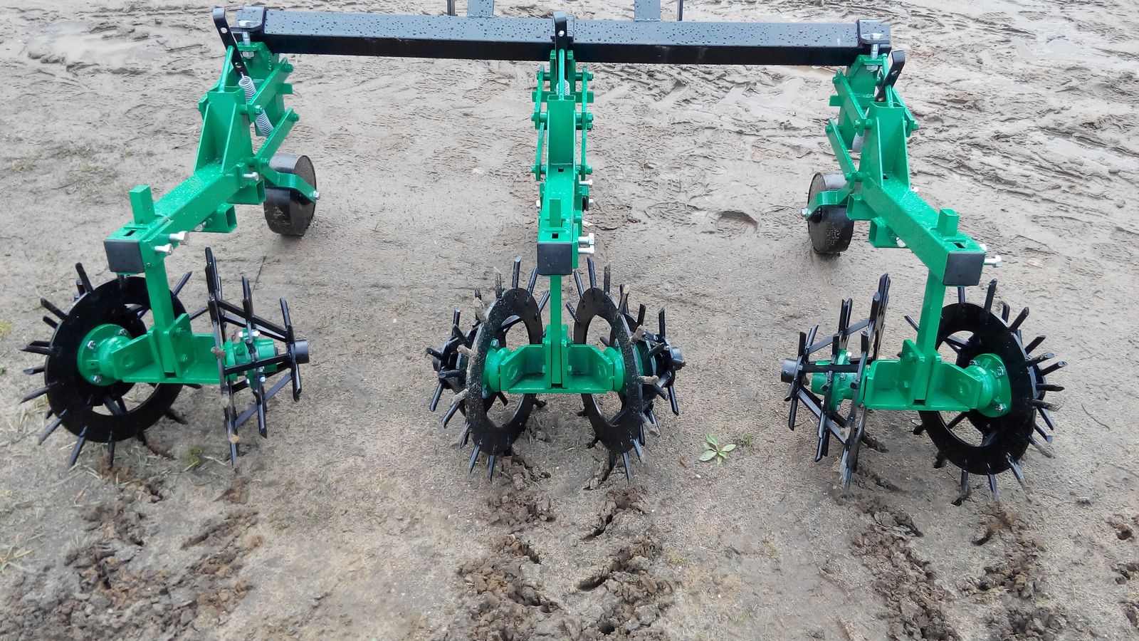 Rollhacke für Kartoffelanbau. Das Gerät vernichtet harte Erdkruste, entfernt Unkraut mit den Wurzeln, formt die Dämme genau wie Kartoffelhäufler. Verfügbar zusammen
