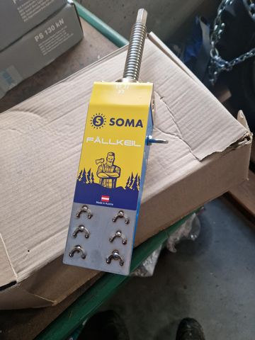 SOMA Fällkeil, Forstkeil FK60- Länge 440 mm- Breite 80 mm- Höhe: 65 mm- Hub: 60 mm- Gewicht: 3, 3 kg- Spindeltyp: TR 24x5- Drehmoment: 745 Nm- Speziel