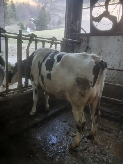 Verkaufe schöne Fleckviehkuh BIO, sehr gutmütig und führig. Geboren 01.01.2018, belegt mit GS Maxxis, soll kalben am 5.10.2026. Aktuell 25 kg Milch und 4, 2 % Fett, 3