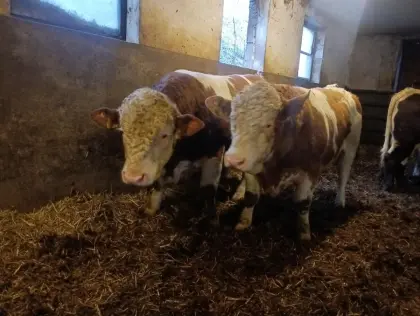 Verkaufe zwei sehr schöne Fleckvieh Fleischzuchttiere mit genomischer Untersuchung, Köhrpapiere und Abstammsnachweis. Sehr ruhige und weidetaugliche Stiere. Mercato