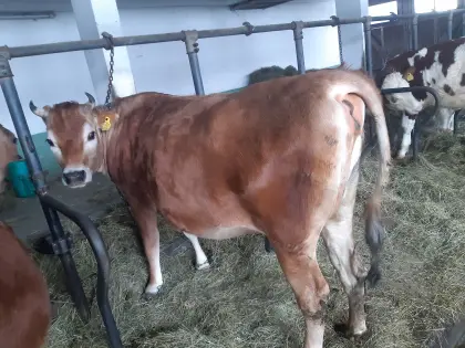 Verkaufe trächtige Jersey-Kalbin, Anbinde- und Weidehaltung, aus Heubetrieb, halfterführig, sehr zutraulich und gutmütig, Abkalbetermin am 22.4.2026, Raum Mondsee, O