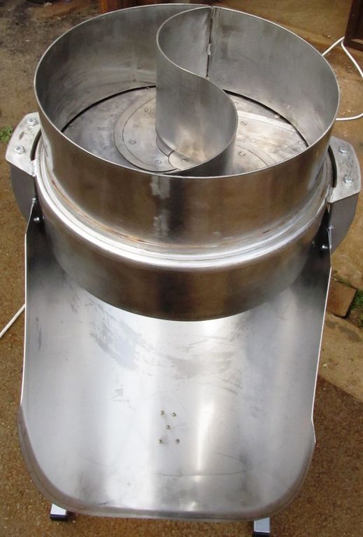 Elektrischer Krautschneider für Sauerkrautproduktion. Antrieb mit Elektromotor 0, 75 kW, Leistung ca. 500 kg/Std. Messer fünfteilig, eingestellt auf 1, 3 mm, ideal für