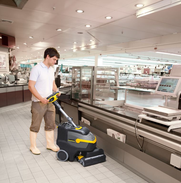 Die Kärcher BR 35/12 C Bp Pack ist ein sehr kompakter, leichter und wendiger Batterie-betriebener Scheuersauger für Flächen bis 1000m² aber auch enge Bereiche. Dank