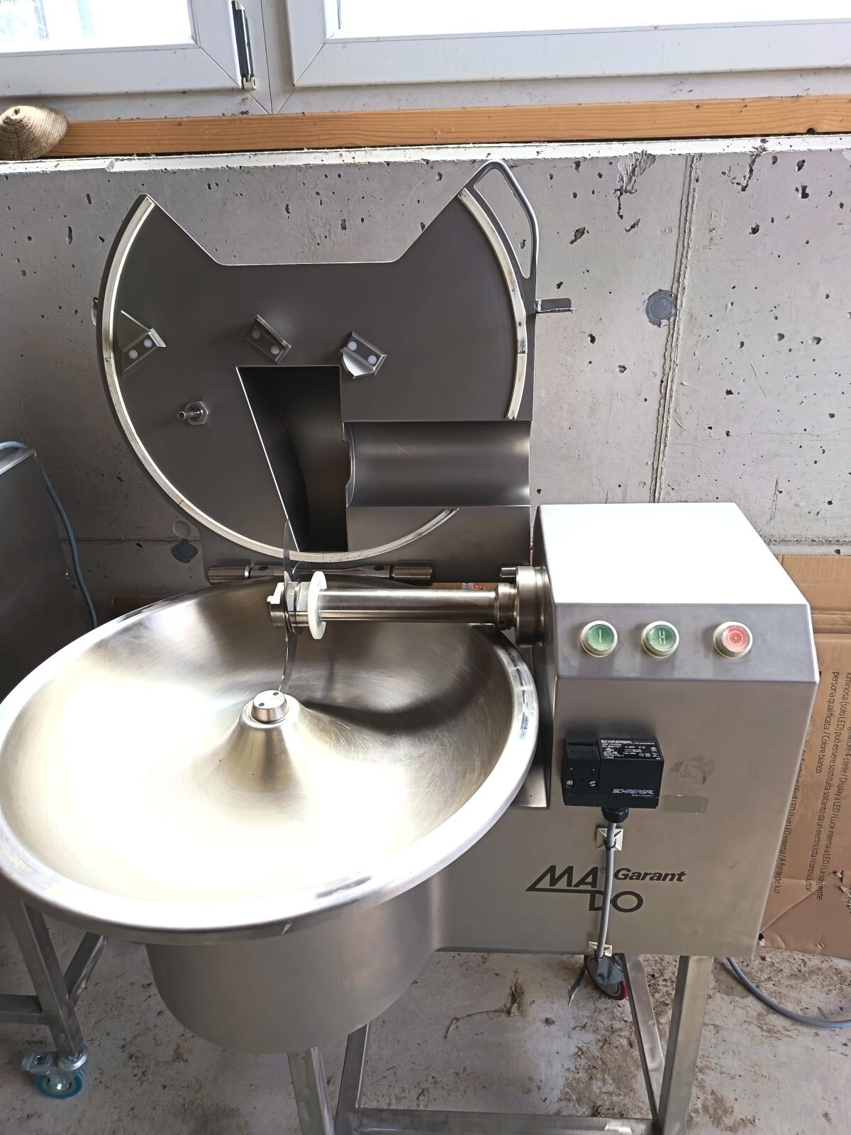 Verkaufe Mado Kutter 13 l, 3 Messer, 2 Messer und 2 Schüsselgeschwindigkeiten. Mit fahrbarem Niro-Untergestell und zweitem Messersatz. Sehr guter Zustand. Vendita di