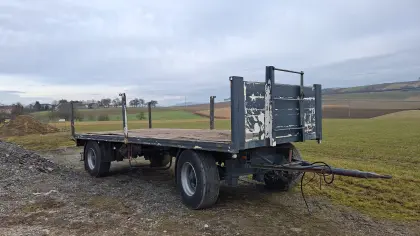 Verkaufe Plateauanhänger Kässbohrer ohne Wände, gebrauchter Zustand, Bastlerfahrzeug. Länge 6, 50 m, Breite 2, 55 m, 2-Leiter-Druckluftanlage vorhanden. Anhänger Sonst