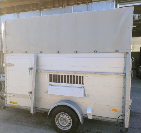 Zum Verkauf steht ein Viehanhänger der Firma Alf. Hydraulische Auflaufbremse, Doppelachser, 2 Abtrennwände im Innenraum, Abtrenngitter für die Rampe. Leergewicht 1.2